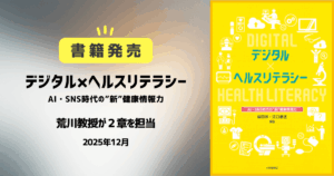 - 荒川教授が2章を担当した書籍発売2025年12月1日に、荒川教授が第2章を担当した書籍「デジタル×ヘルスリテラシー (AI・SNS時代の”新”健康情報力)」が発売されます。 2章では、急速に進化するデジタル技術が現代のヘルスケアにおいてどのように実装さ […]