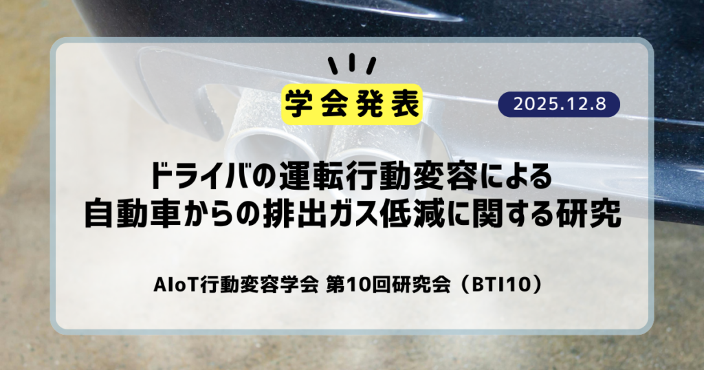 ドライバの運転行動変容による 自動車からの排出ガス低減に関する研究 Conference AIoT行動変容学会 第10回研究会(BTI10), 2025.